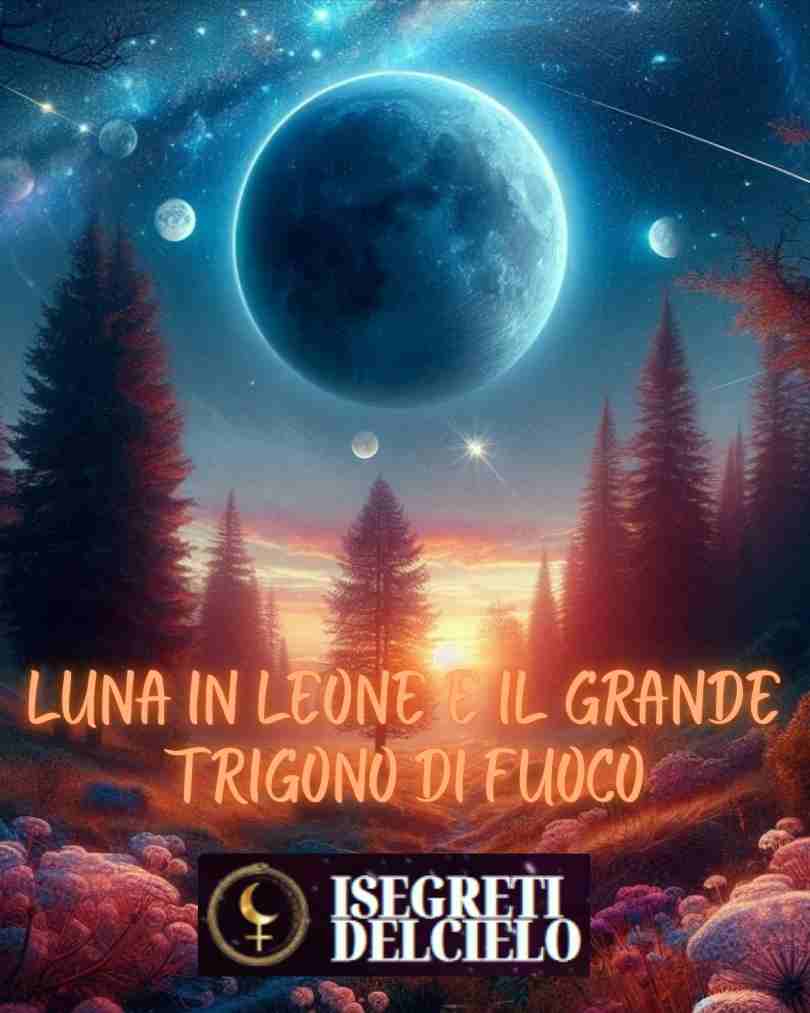 Avremo una Luna in Leone che dal primo momento in cui entrerà nel segno sarà stimolata e rinforzata da Nettuno a 2°, Saturno a 5° e Sole a 7° che formeranno con lei un potente trigono dall'Ariete accompagnandola a risplendere in tutta la sua bellezza e magnificenza.